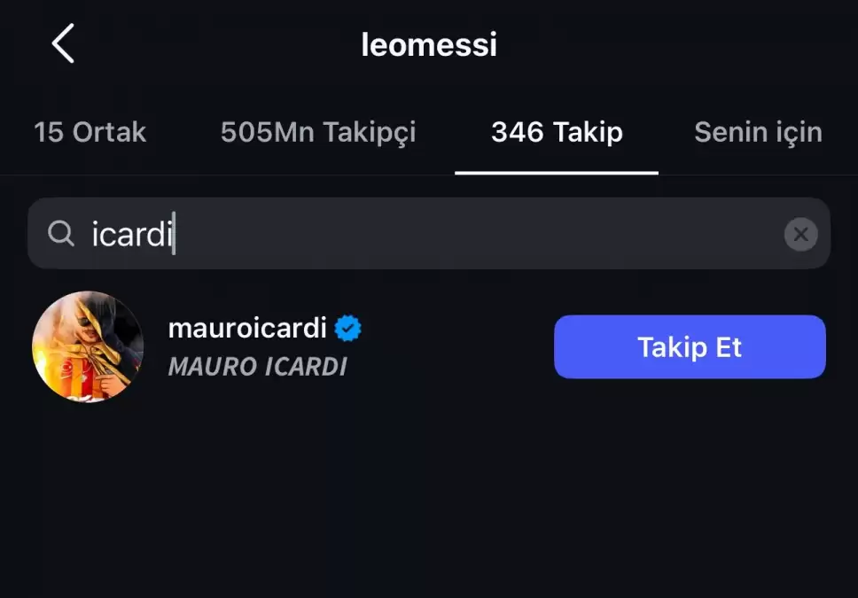 Süper Lig takımlarından Galatasaray'ın yıldız futbolcusu Mauro Icardi, uzun bir süredir araları bozuk olduğu Lionel Messi'yi yeniden takip etmeye başladı.
