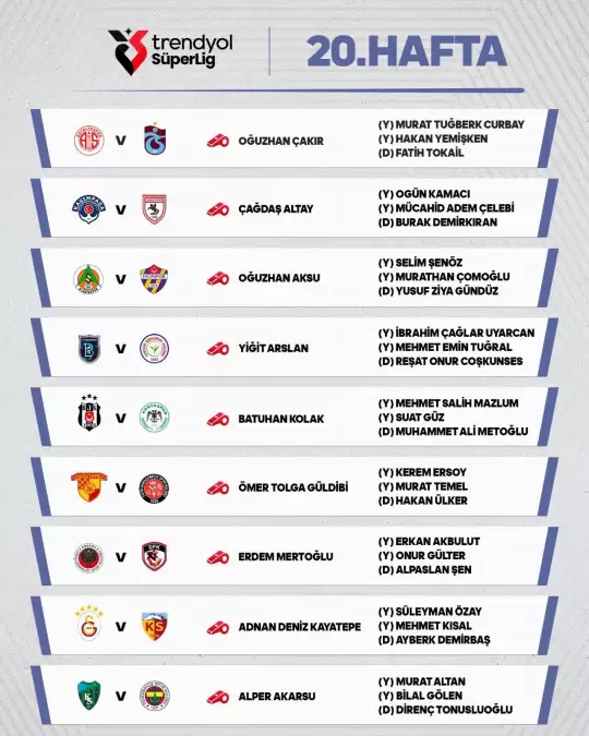 Son dakika haberleri. Türkiye Futbol Federasyonu Merkez Hakem Kutulu, Trendyol Süper Lig'in 20. haftasında görev alacak hakemleri açıkladı. Detaylar...