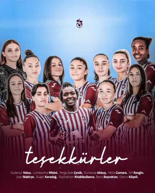 Bordo-Mavili kulüpten yapılan açıklamada, "Trabzonspor Kadın Futbol Takımımızın oyuncularından Sudenur Yolcu, Lumbardha Misini, Ferda İpek Çevik, Rumeysa Akkuş, Meta Camara, Elif Kesgin, Joan Nabirye, Buket Karadağ, Diyorakhon Khabibullaeva, Berra Bayraktar ve Elanur Köşeli ile yollarımızı ayırmış bulunmaktayız.